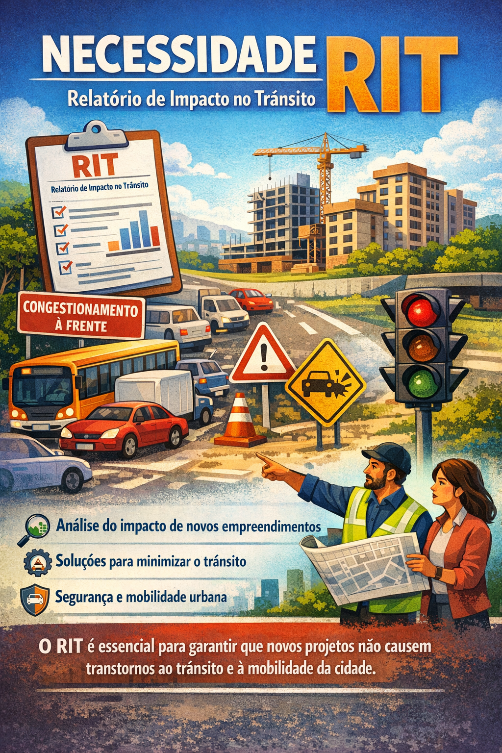 O RIT (Relatório de Impacto no Trânsito) é um estudo técnico fundamental para avaliar como um empreendimento — seja residencial, comercial ou industrial — afetará o fluxo viário da região.